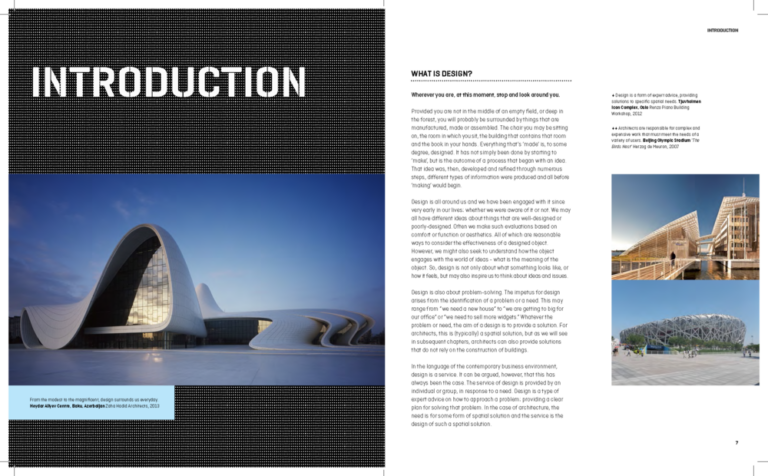 Architects spend a great deal of their time involved in designing. From initial ideas to finished buildings, design takes place throughout the project cycle. As professionals, we may take it for granted that design and the process of design are easily understood. However, as a student this may not be the case.